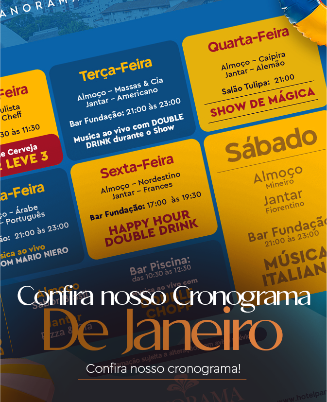 Nos anos 60, o engenheiro Geraldo Mantovani criou um projeto visionário que marcou a cidade. Em formato circular e com 20 andares, o Panorama Hotel & Spa é um dos principais cartões-postais da estância hidromineral. Recentemente revitalizado, o hotel resgatou o charme vintage dos anos 60 no lobby e no elegante Bar Fundação, com ambientes modernos, aconchegantes e sofisticados.